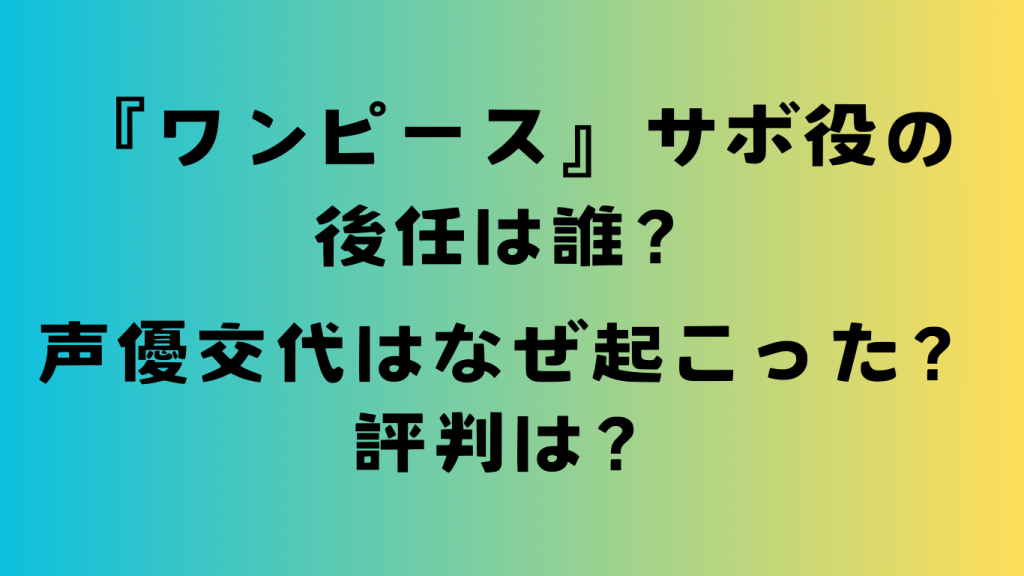 『ワンピース』サボ役の後任は誰?声優交代はなぜ起こった?評判は?